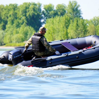 Если рассматривать комплект ТАЙМЕНЬ RX 3700 НДНД с мотором 9.8 л.с. то вы получите относительно бюджетный и легкий вариант, подходящий под компанию из 2-3 пассажиров и небольшого набора вещей. При выходе лодки в режим глиссирования Вы с легкостью сможете преодолевать большие расстояния.